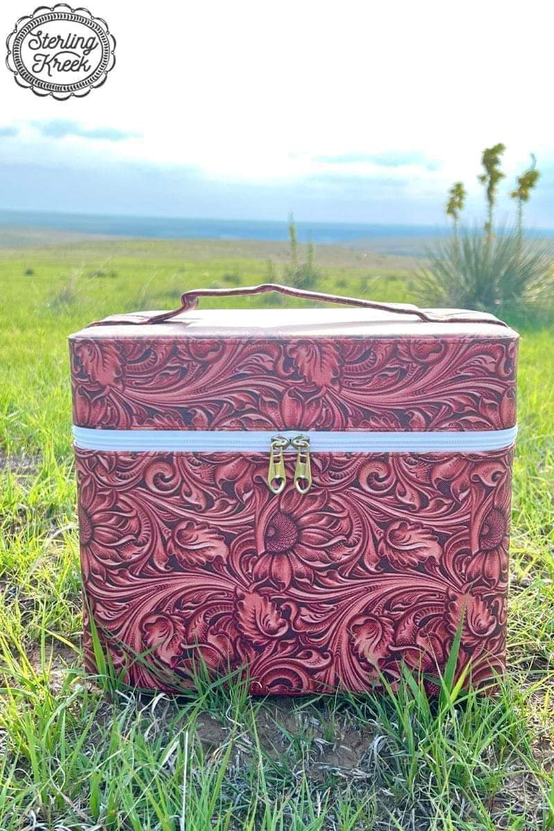 This makeup box is a tooled leather print on the outside and turquoise Aztec on the inside - the perfect combo to get ready in style! With sliding trays, this box will keep all your beauty goods securely in place even when the world's spinning. Don't just look your best, feel your best with this one of a kind make up box.