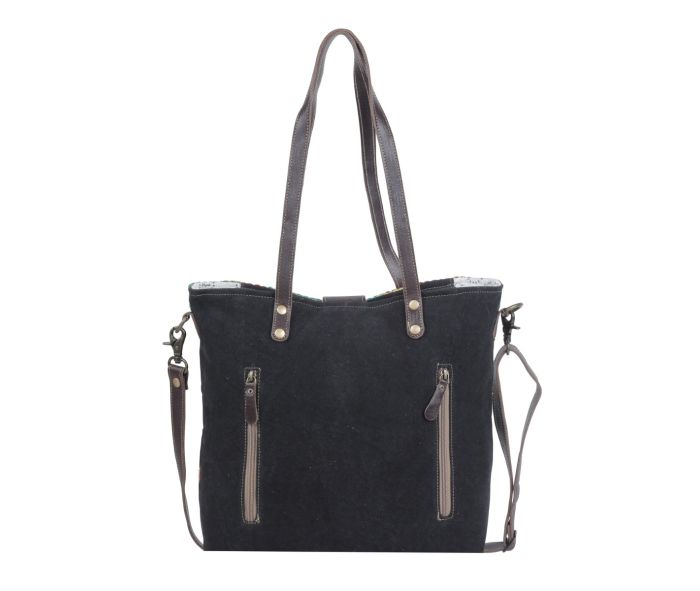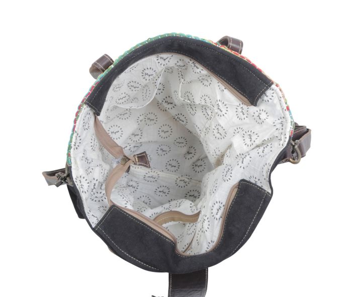 This multicoloured, geometric patterned canvas tote bag will look great with bohemian, ehtnic and casual outfits. Concealed carry right or left hand access.