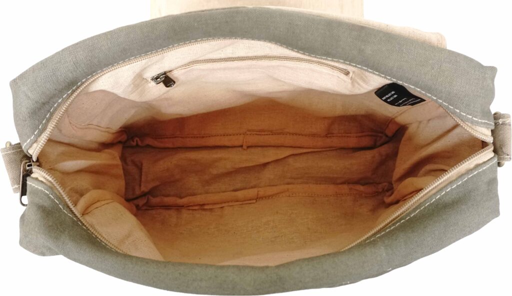 Our recycled military tent cross body features a print patch on the front flap. Top Zipper, 1 interior zipped pocket, fully lined.