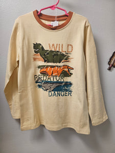 Yellow long sleeve Children shirt with Dinosaurs on the front